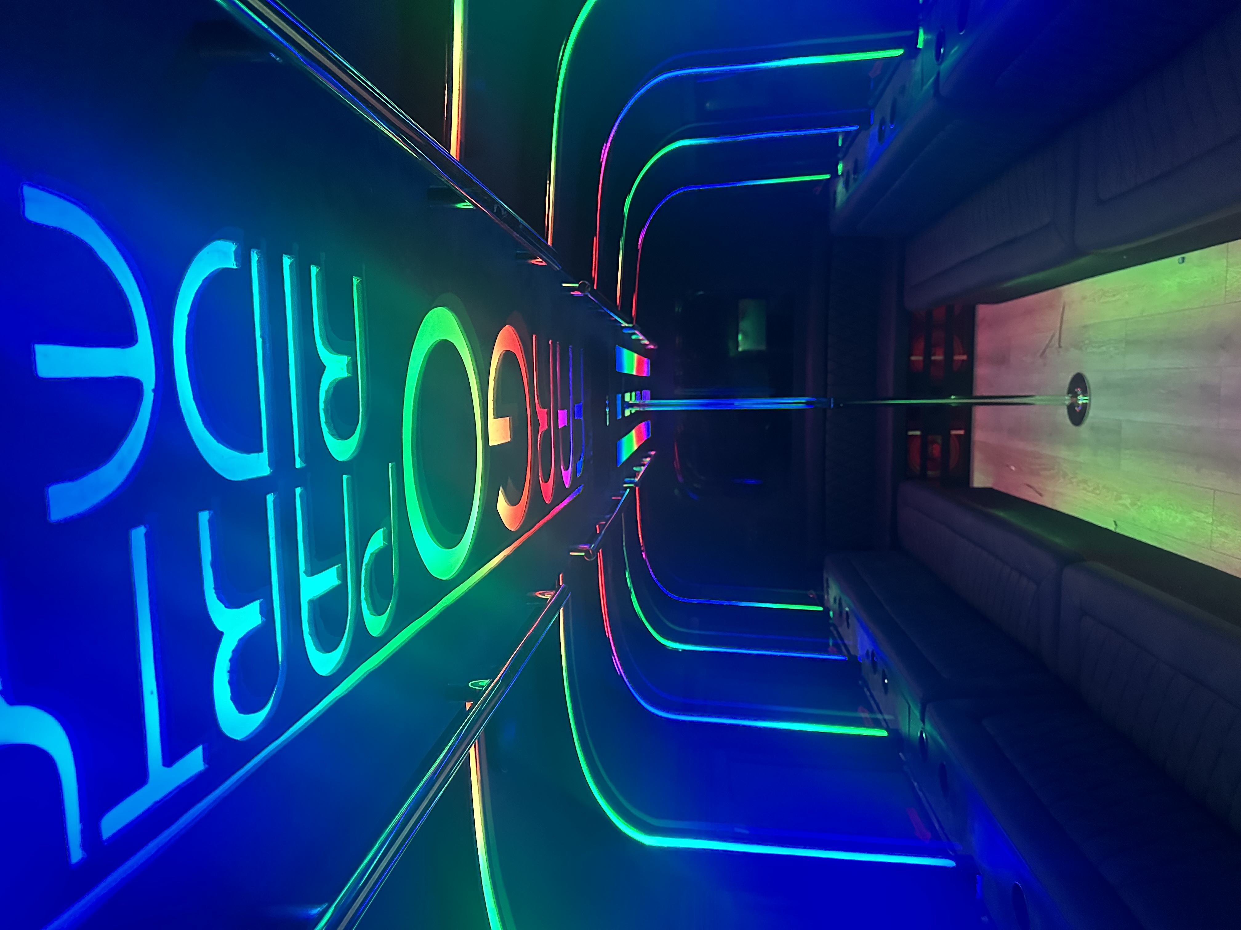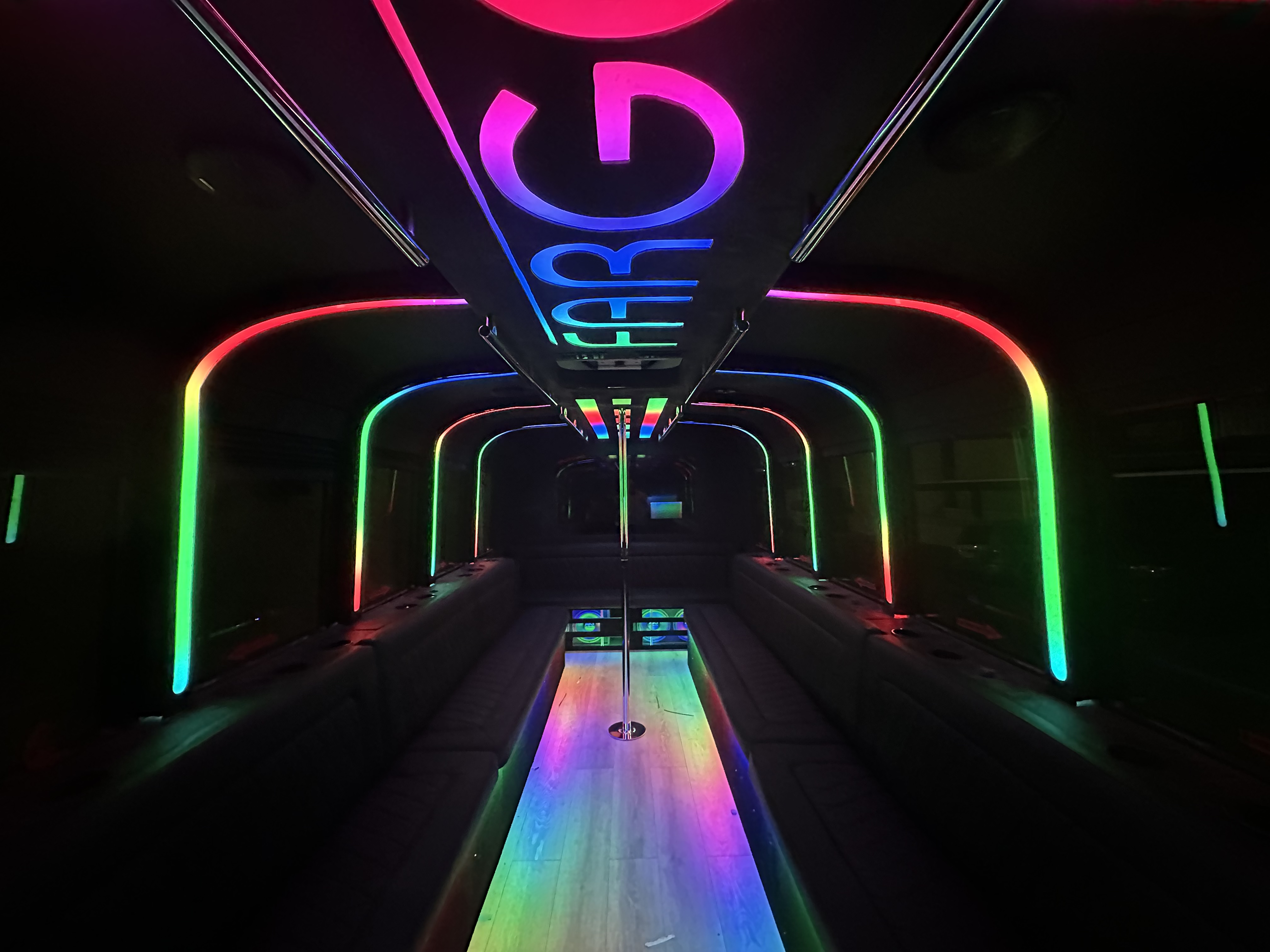 The SHOW STOPPER stands out from other rides in the fleet with dramatic lighting features including an epic Fargo Party Ride custom LED sign on the ceiling.